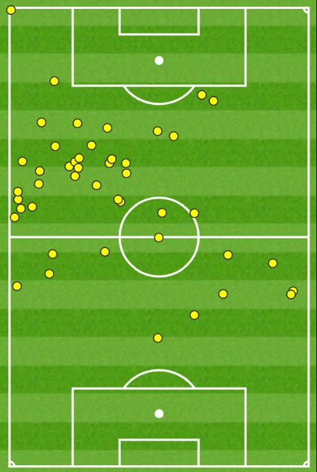 Vị trí Bruno tin dấu giày trên sân trong trận đấu với West Ham. ẢNH: OPTA