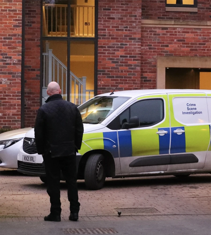 Lực lượng chức năng có mặt ở nhà Greenwood và thực hiện lệnh bắt giữ. ẢNH: CHRIS NEILL, EAMONN AND JAMES CLARKE