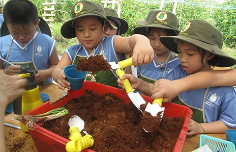 Sau đó, chúng tôi ghé rừng Nam Cát Tiên cắm trại trong đó ba ngày. Tại đây, chúng tôi đi leo núi, tắm suối. Các con được trải nghiệm trồng cây rừng, cùng ăn cùng ở với nhau, hát hò... Những “bài học” cứ thế tự nhiên hình thành: Làm thế nào để sống trong rừng? Rừng hình thành thế nào và giá trị ra sao? Trẻ học cách giúp đỡ mọi người, nhất là những em nhỏ hơn... Nhìn đứa nào cũng chân lấm tay dơ trồng cây, rồi quần áo nhem nhuốc hò hét tạt nước vào nhau dưới suối mà ai cũng thấy “đã”. Tất nhiên, để có những ngày như thế thì chúng tôi phải chuẩn bị rất kỹ càng mọi thứ.