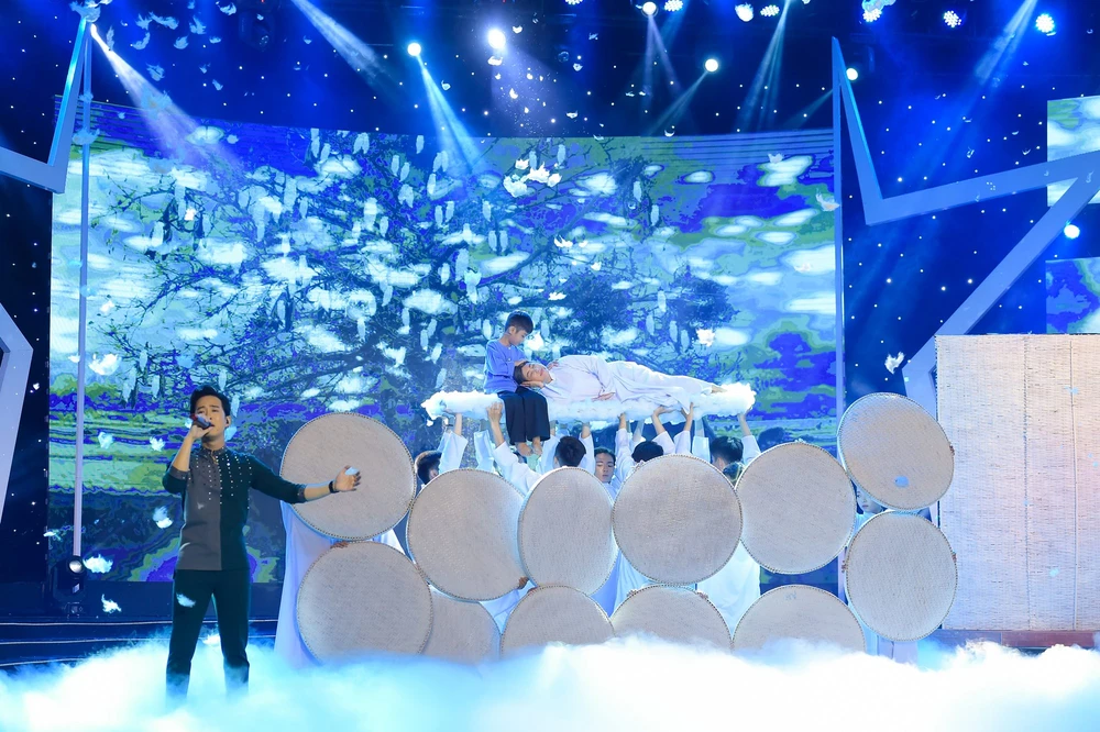 Cảnh mây trắng trong ca khúc kết Cõng mẹ đi chơi đã giúp Triệu Lộc ghi điểm toàn vẹn với giám khảo và khán giả tại trường quay - Ảnh: Lý Võ Phú Hưng