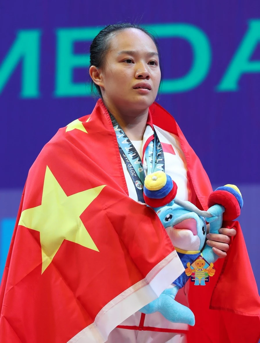 Nữ lực sĩ Vương Thị Huyền giành HCĐ nội dung cử đẩy. ẢNH: IWF