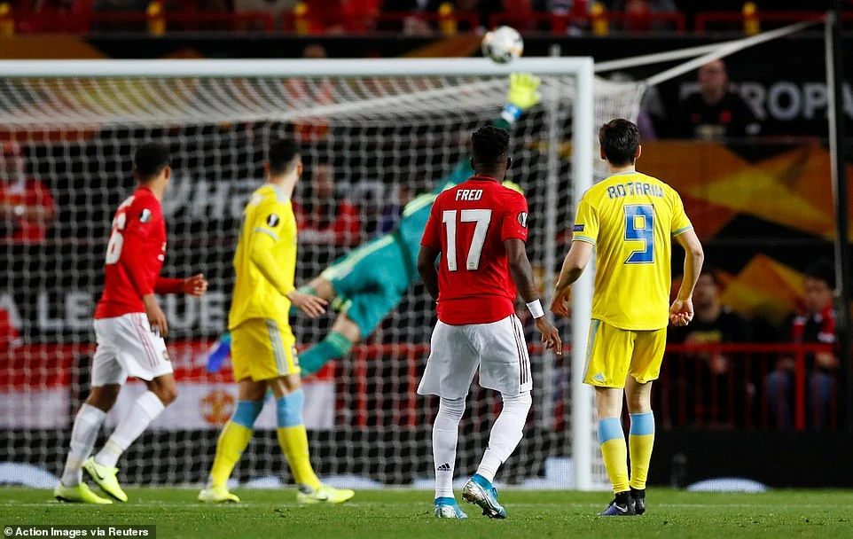 Ngay từ những phút đầu Man.United cho thấy sức mạnh vượt trội bằng pha hãm thành đầu tiên của mình. Phút thứ 3, tiền vệ Fred dứt điểm đưa bóng đi vào xa ngang khung thành Astana. “Lời cảnh cáo” đã sớm được các cầu thủ đội chủ nhà đưa ra, suốt hiệp một đội khách Astana phải gồng mình chống đỡ những đợt lên bóng như cuồng phong từ phía Man. United.