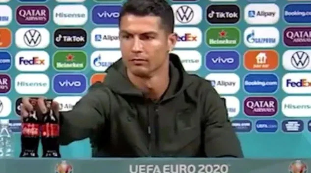 Cristiano Ronaldo, 36 tuổi vừa gây bão trong phòng họp báo khi anh gạt hai chai coca-cola của nhà tài trợ Euro 2020 sang một bên, đồng thời anh cầm chai nước lọc trên tay và kêu gọi “Hãy uống nước”.
