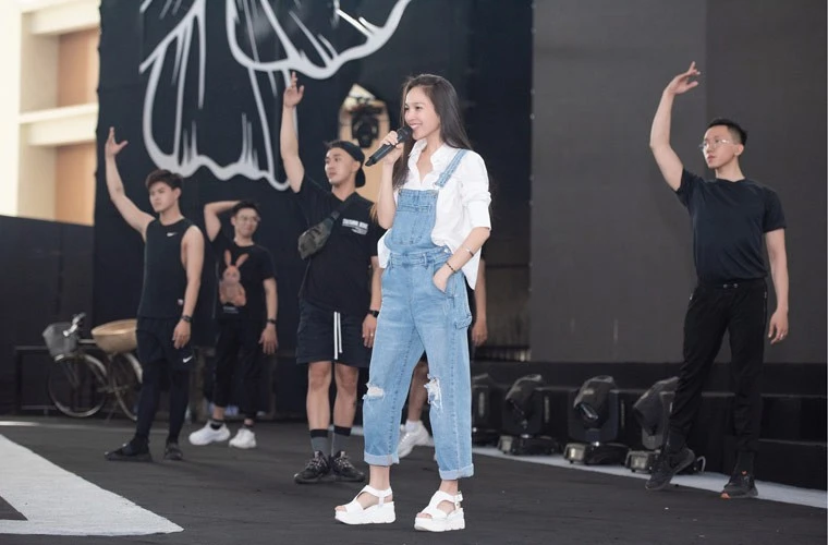 Á hậu Kiều Loan tại buổi tổng duyệt.