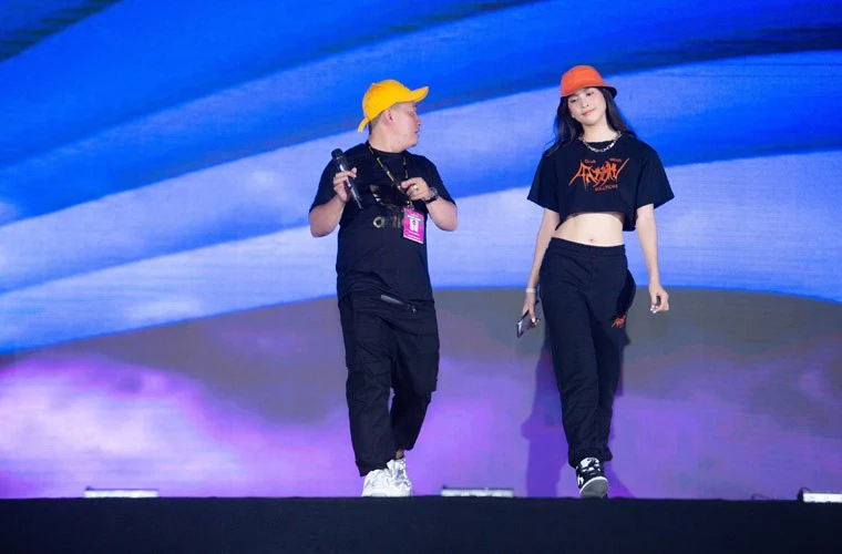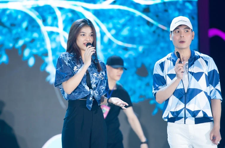 Hoa hậu Lương Thùy Linh làm MC tại buổi tổng duyệt.