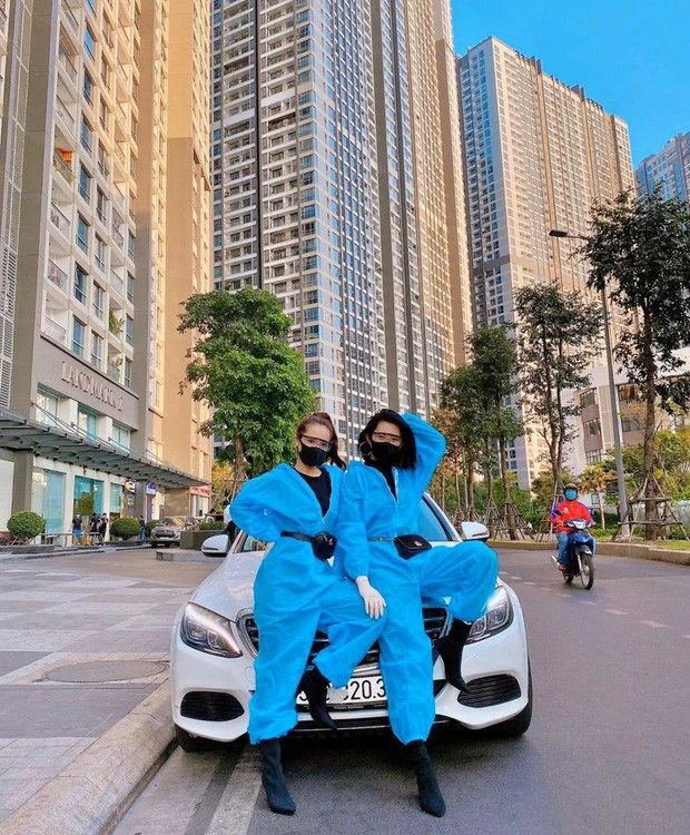 Ca sĩ Hồ Ngọc Hà (bên phải) và nhà thiết kế Lý Quý Khánh ton-sur-ton.