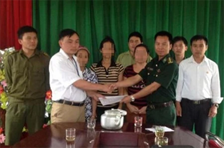 Bộ đội Biên phòng Nghệ An giải cứu, trao trả ba chị H., C. và T. cho gia đình. Ảnh: L.HẠCH