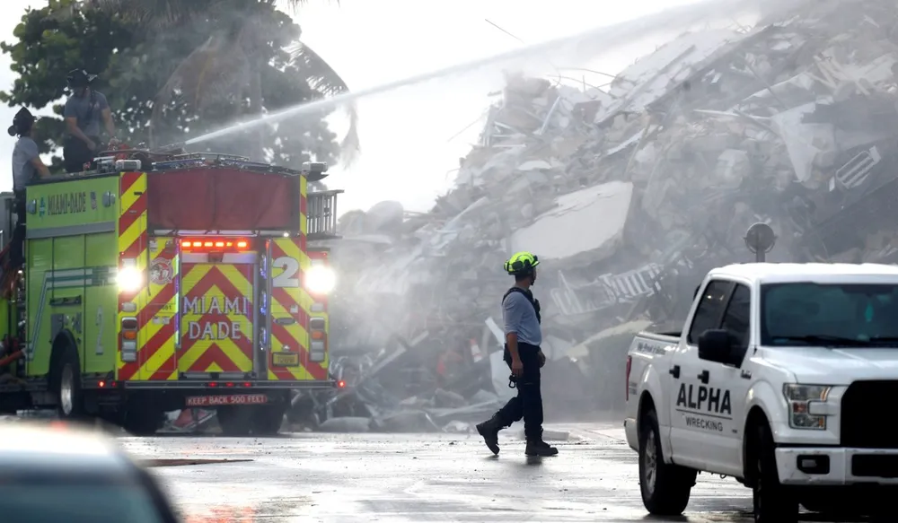 Các nhà chức trách hiện vẫn đang cố gắng xác định điều gì đã gây ra sự cố thảm khốc hôm 24-6, dẫn đến việc một phần tòa nhà đổ sập.