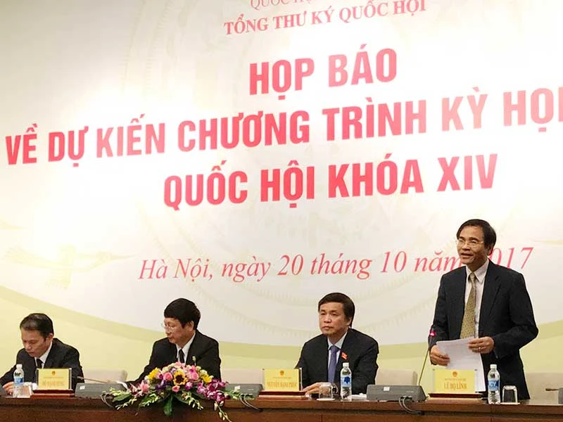 Chiều 20-10, Văn phòng Quốc hội (QH) đã tổ chức cuộc họp báo để thông tin về chương trình kỳ họp 4, QH khóa XIV khai mạc vào đầu tuần sau, ngày 23-10 và bế mạc ngày 24-11. Theo chương trình dự kiến, kỳ họp thứ 4 sẽ làm việc trong 26 ngày, khai mạc vào ngày 23-10 và bế mạc vào ngày 24-11-2017.