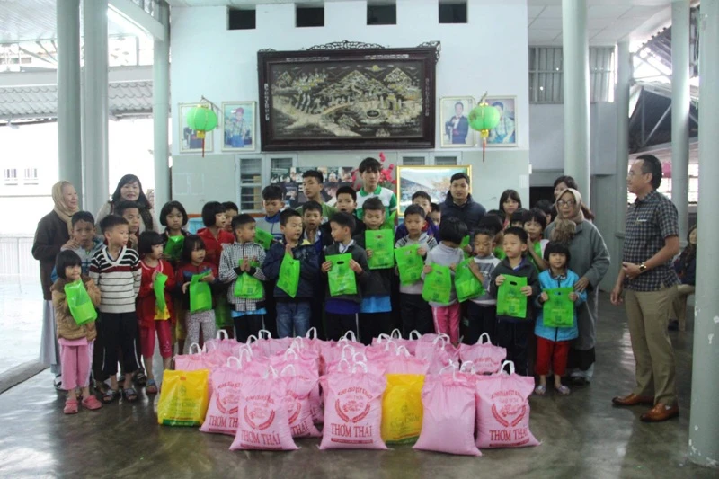 Người dân địa phương vui với quà tặng dầu tràm...