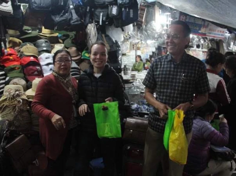 Dầu tràm, khẩu trang vải, dung dịch sát khuẩn... tặng các tiểu thương chợ Đông Ba (Huế).