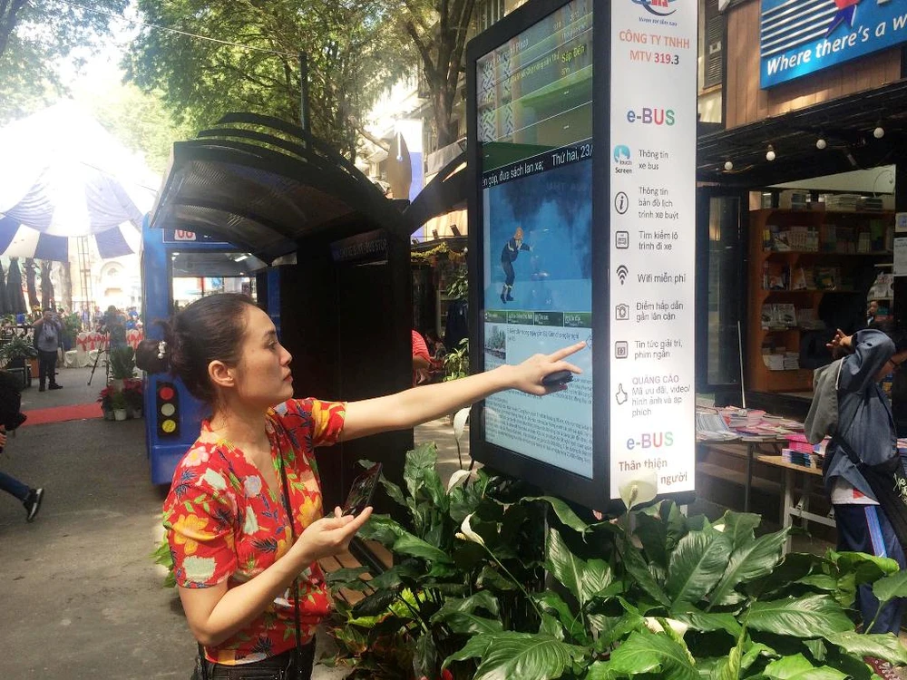Người dân thích thú với bảng tra cứu thông tin về xe buýt.