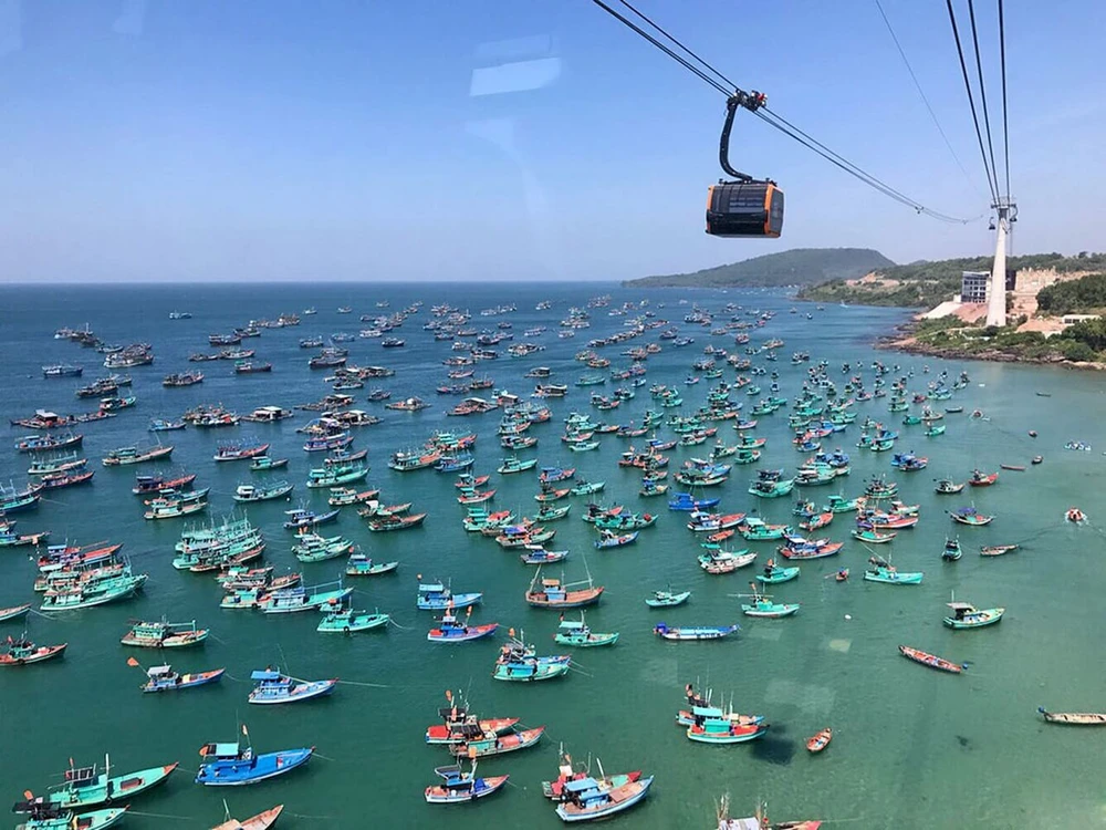 Cáp treo Hòn Thơm - cáp treo ba dây vượt biển dài nhất thế giới vừa khánh thành tại đảo ngọc Phú Quốc.