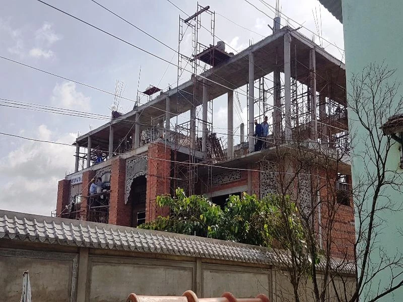 Đơn vị thi công Công ty TNHH xây dựng DHK do ông Cương Sơn Đặng Hoàng Khanh làm chủ thi công (ông Khanh đang bị tạm giam vì gây tai nạn giao thông trước đó). Số tiền đầu tư công trình khoảng 10 tỉ đồng với quy mô 2 tầng.