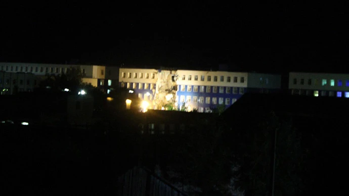 Hình ảnh hiện trường vụ sập doanh trại được người dân đăng tải trên trang Twitter (Nguồn: Sputnik News)