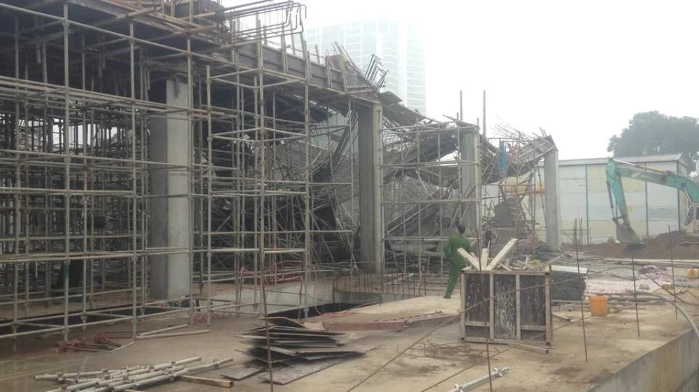 Thời điểm trên, 19 công nhân đang thi công tại khu vực thì giàn giáo bất ngờ đổ sập. Số công nhân đang đổ bê tông phần mái che, trong đó 12 người trên giàn giáo, bảy người ở dưới.