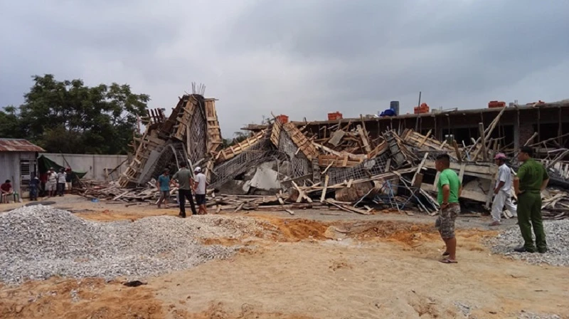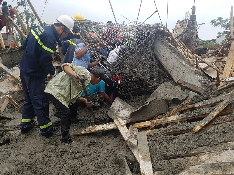 Một công nhân cho biết khi họ đang đổ bê tông sàn thì bất ngờ phát hiện giàn giáo từ từ nghiêng và đổ sập. Sự việc diễn ra quá nhanh nên mọi người không kịp trở tay.