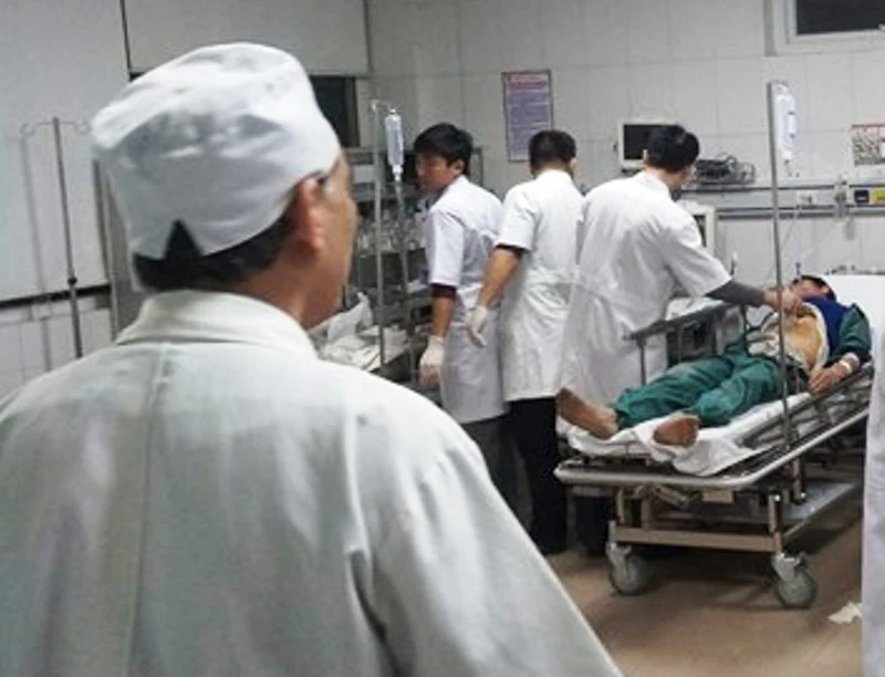 Công nhân bị thương trong vụ sập giàn giáo đang cấp cứu, điều trị tại BV 115 Nghệ An.