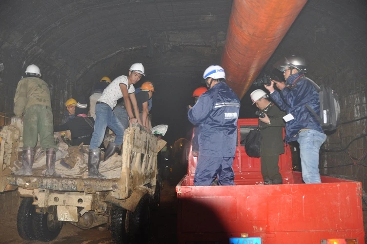 Mực nước trong hầm hiện nay là khoảng hơn 1m (đêm qua cao đến 1m7) . Máy bơm nước vẫn đang tiếp tục làm việc, dù nước thoát ra chậm nhưng vẫn đảm bảo không cho lượng nước tăng lên nữa.