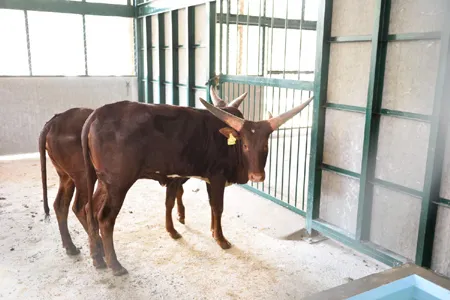 Bò sừng dài vừa được đưa bằng máy bay về vườn thú.