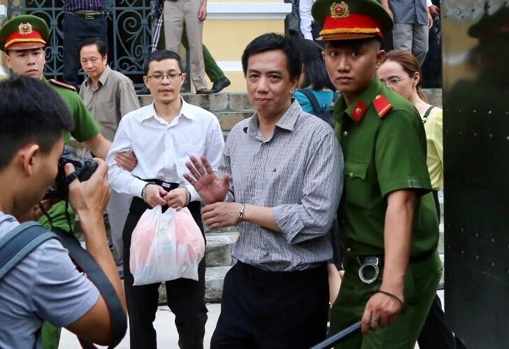 Bị cáo Võ Mạnh Cường dời tòa, về trại giam. Ảnh: HOÀNG GIANG