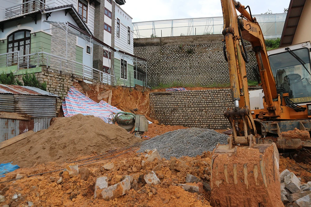 Trưa 6-10, tại nhà ông Lê Tấn Hùng ở phường 3, TP Đà Lạt, tỉnh Lâm Đồng, một nhóm công nhân dọn dẹp mặt bằng để xây dựng kè taluy trên đường An Bình thì thì bờ taluy tường ngôi nhà số kế bên 20 bất ngờ đổ sập.