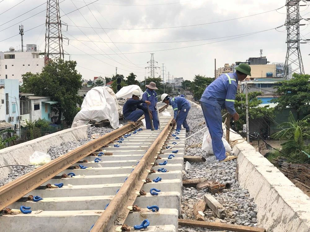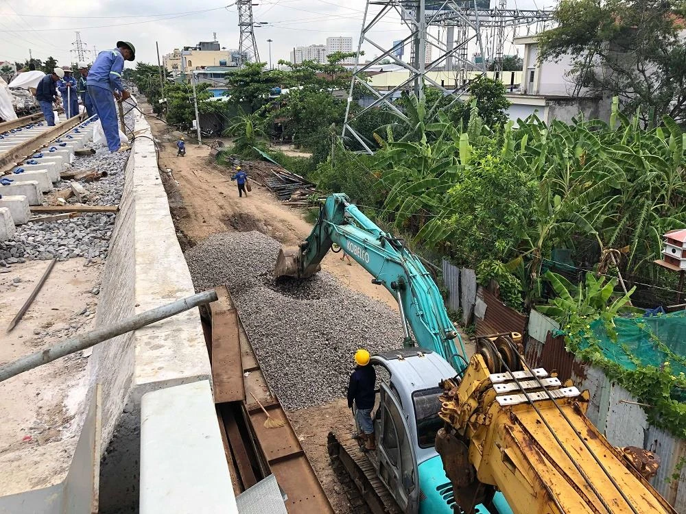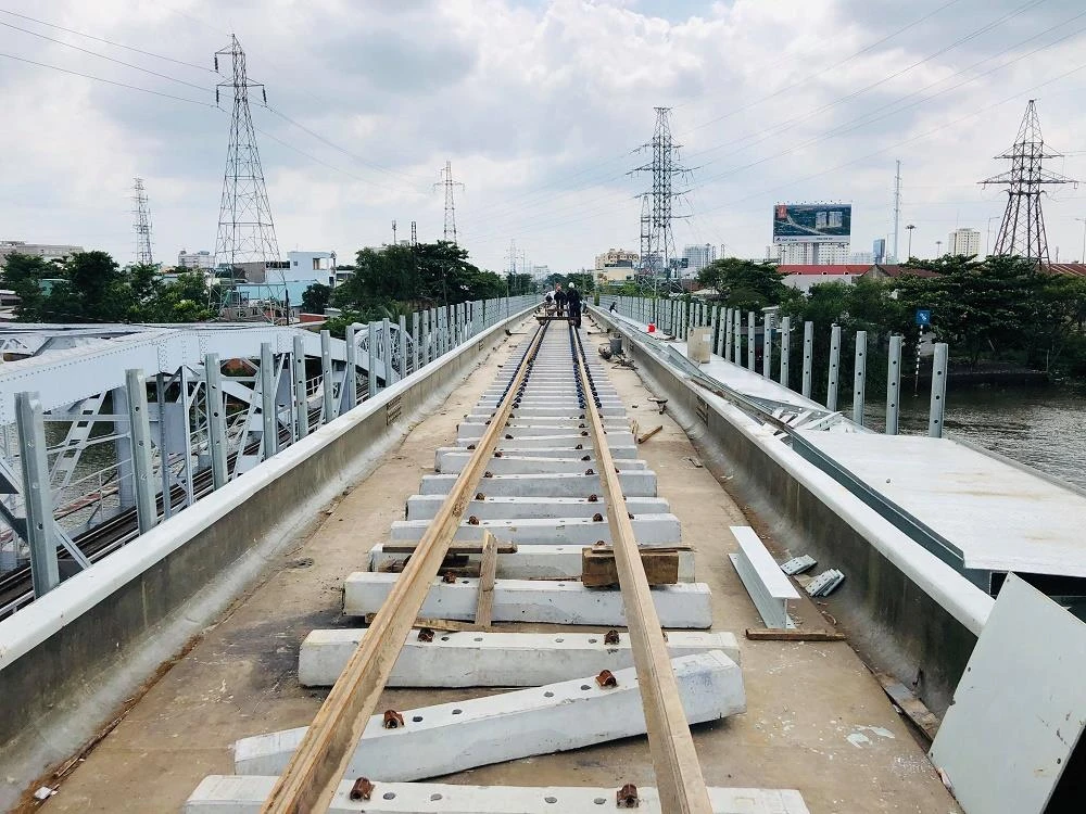 Cầu đường sắt Bình Lợi đang hoàn thiện những khâu cuối cùng.