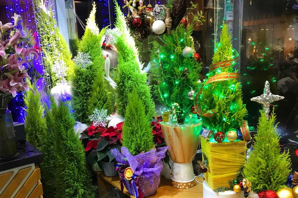Tại một cửa hàng chuyên cây cảnh và các loại sơn tùng mini ở quận 3, chị Vy chủ tiệm, cho biết cây sơn tùng nhỏ chưa trang trí dao động từ 100.000 đồng - 1,2 triệu đồng/cây tùy kích cỡ, phí trang trí 150.000 đồng - 1 triệu đồng/cây theo từng loại phụ kiện.
