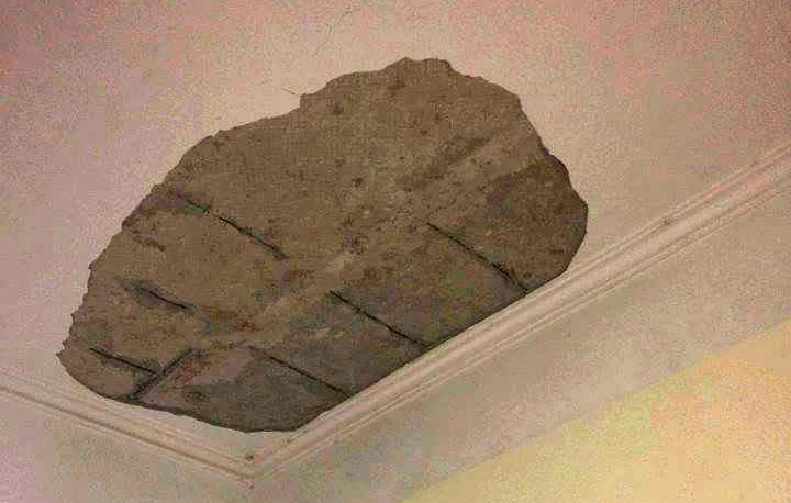 Cả mảng vữa trần sập xuống khiến 3 học sinh lớp 1 phải nhập viện điều trị. Ảnh: Đ.HOÀNG
