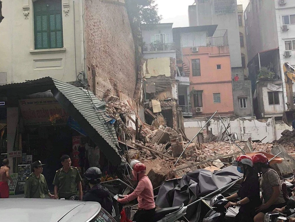 Hiện trường vụ sập tường nhà. Ảnh: Facebook