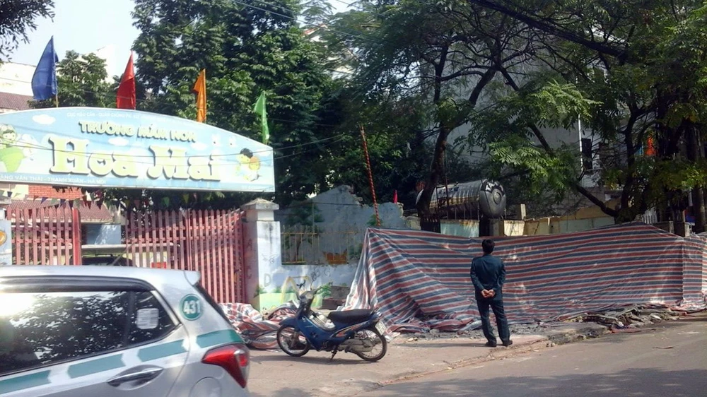 Lúc này, có khoảng năm, sáu người đang tiến hành tháo dỡ căn nhà cấp bốn nằm ngay gần cổng Trường Mầm non Hoa Mai, thì bất ngờ một tấm bê tông ở trên đổ sập xuống, hất văng một người và đè vào một người khác.