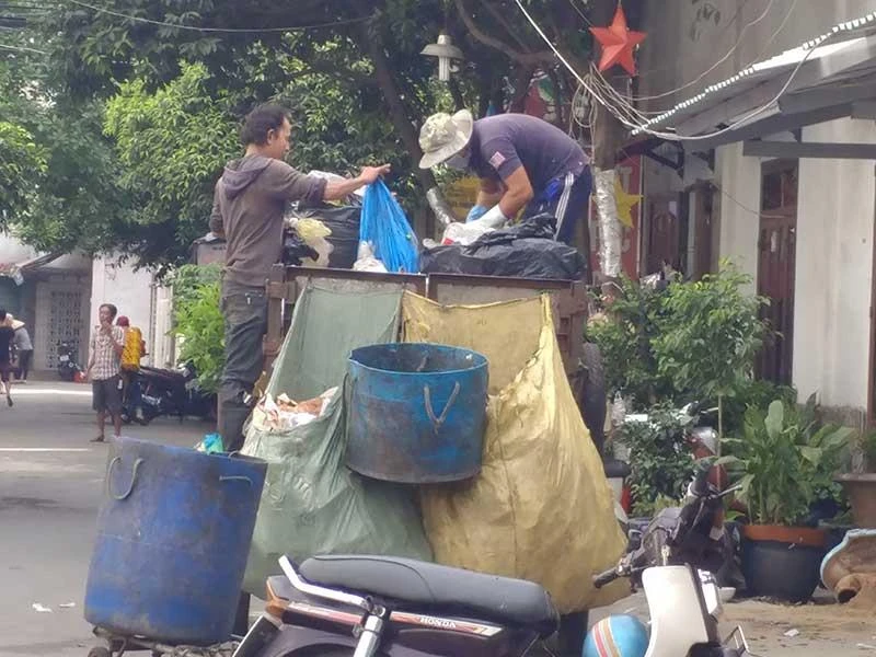 Phương tiện của lực lượng thu gom rác dân lập chưa phù hợp yêu cầu kỹ thuật phân loại rác tại nguồn. Ảnh: CN