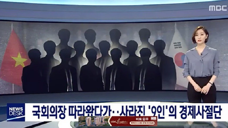 Đài MBC Hàn Quốc đưa tin 9 người trong đoàn Việt Nam trốn lại Hàn Quốc. Ảnh: ĐÀI MBC