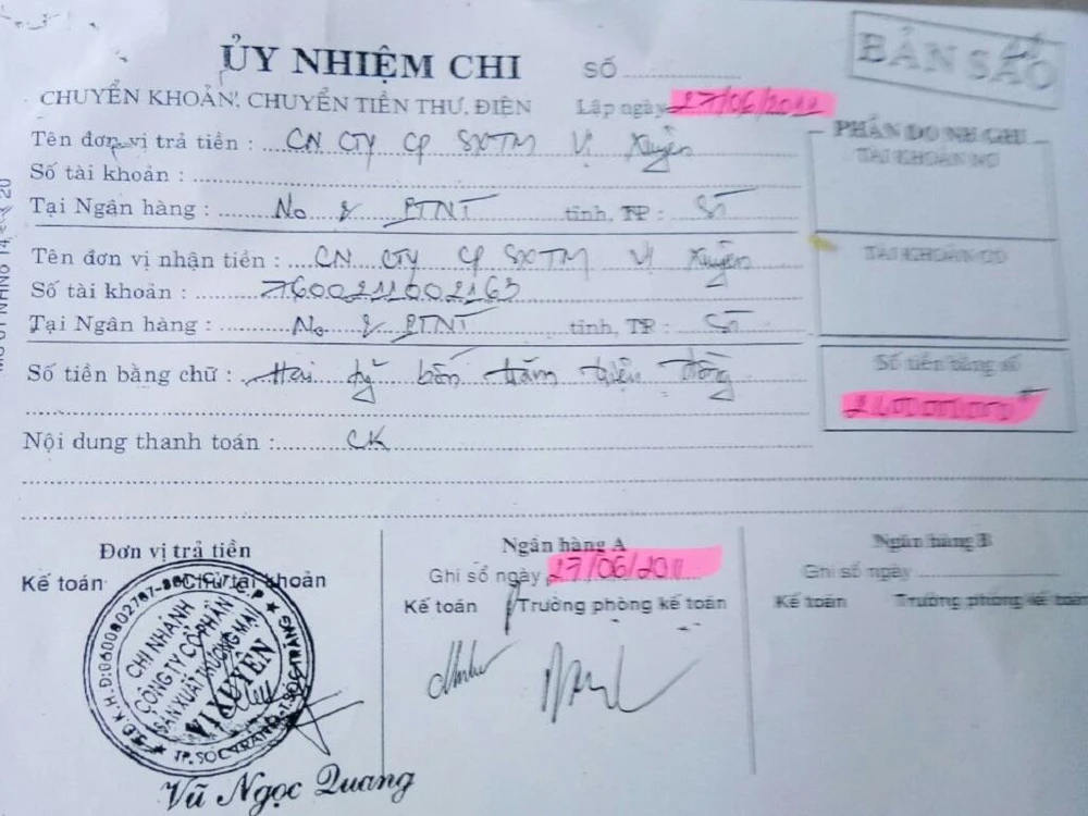 Từ năm 2007, Chi nhánh Công ty Vị Xuyên tại Sóc Trăng có vay nhiều lần Agribank Sóc Trăng để xây dựng nhà máy sản xuất chế phẩm sinh học, men vi sinh... phục vụ ngành nuôi tôm. Tổng tiền vay gốc theo Agribank Sóc Trăng là 10,5 tỉ đồng, tài sản thế chấp là tài sản hình thành trong tương lai và căn nhà nêu trên.