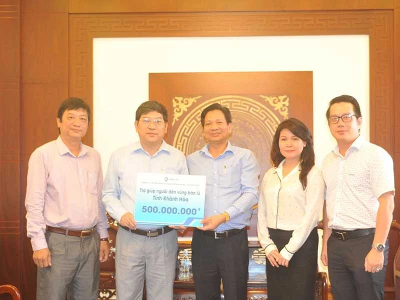 Để kịp thời chia sẻ khó khăn với người dân Khánh Hòa, ngày 10-11, ông Phan Lê Hoan, thành viên Hội đồng quản trị Công ty CP Dịch vụ Hàng không sân bay Tân Sơn Nhất (SASCO), Giám đốc cảng HKQT Cam Ranh và bà Trần Thị Kiều Nga, Chủ tịch Công đoàn SASCO, đã trao 500 triệu đồng (do CBNV SASCO đóng góp) đến Quỹ cứu trợ UBMTTQ Việt Nam tỉnh Khánh Hòa.
