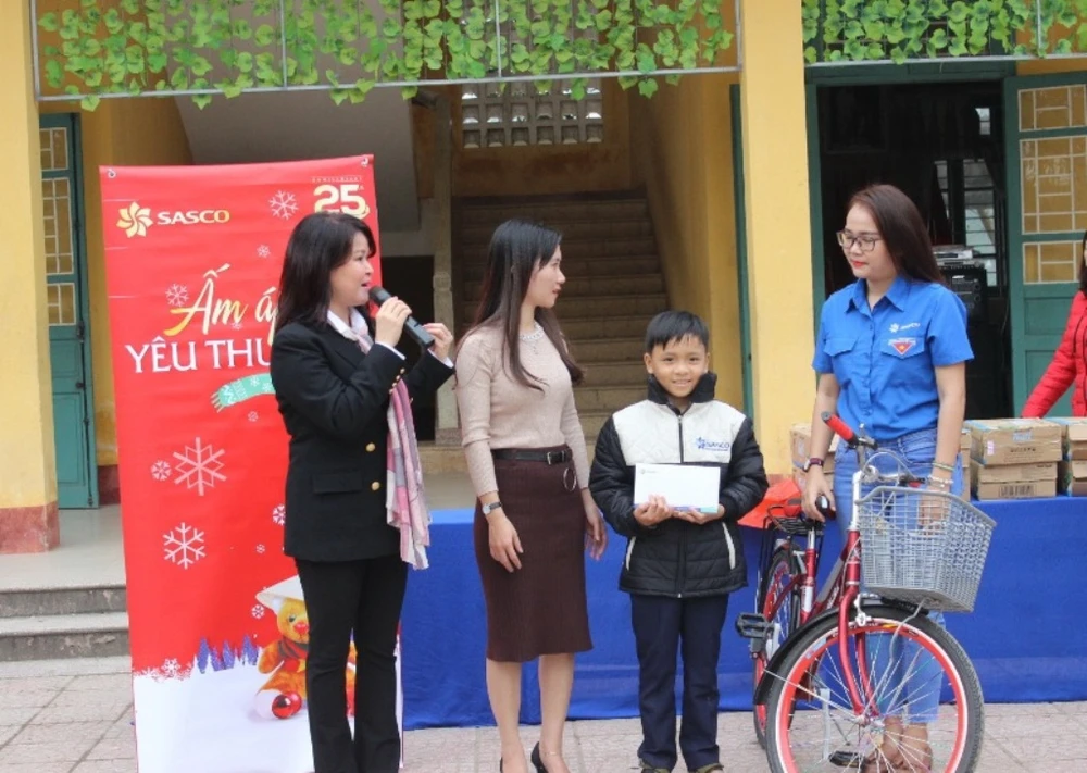 Trong hai ngày 17 và 18-1, SASCO cũng đã trao 410 chiếc áo ấm, bốn chiếc xe đạp và 20 học bổng “Ấm áp yêu thương” đến học sinh vùng cao miền Trung và Tây Nguyên.