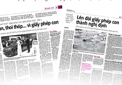 Các bài báo trong loạt bài “Chặt đứt “vòi bạch tuộc” giấy phép con, giấy phép cháu”. Ảnh: HTD