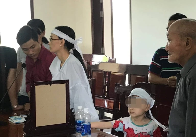 Vợ và hai con của nạn nhân đội khăn tang và mang theo di ảnh đến dự phiên tòa. Khi đại diện VKS phát biểu quan điểm luận tội và đề nghị HĐXX tuyên phạt bị cáo 18-20 năm tù, gia đình nạn nhân phản đối vì cho rằng mức án mà VKS đề nghị là chưa tương xứng với hành vi của bị cáo.