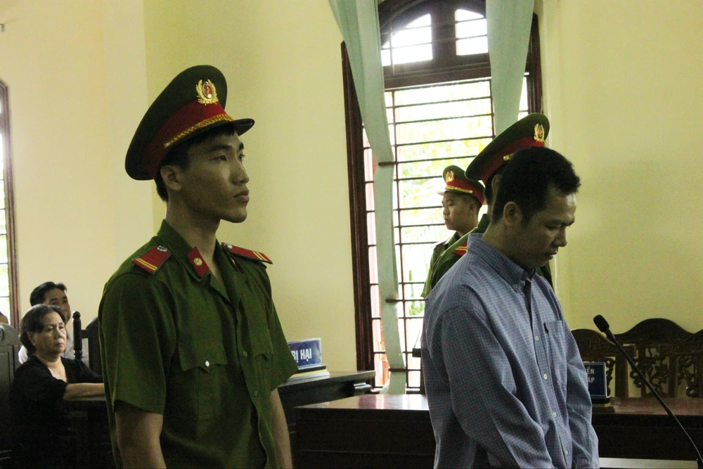 Tại phiên tòa, Tín đã thừa nhận hành vi phạm tội và quỳ xin gia đình bị hại tha thứ.