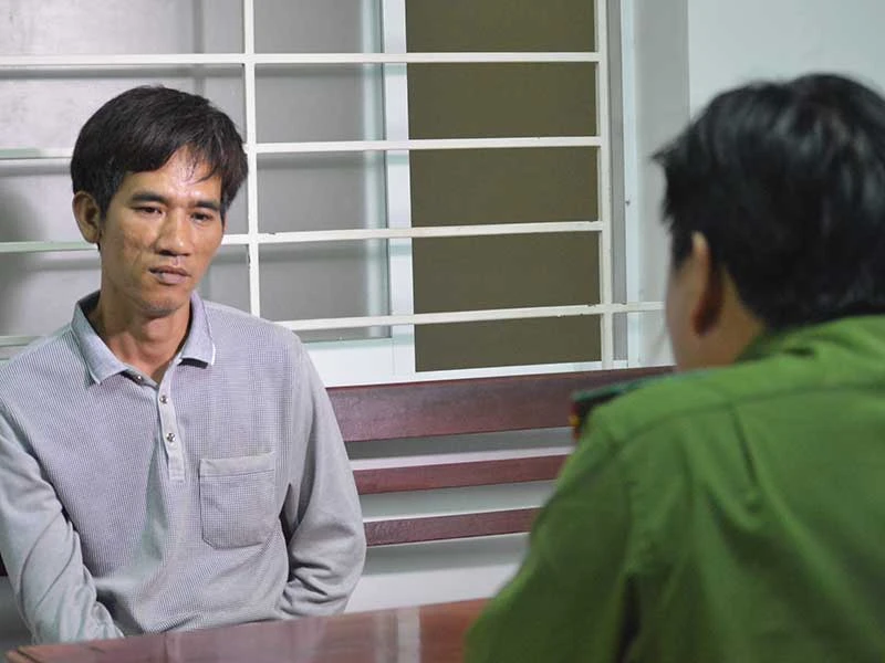 Nghi can Hoàng Trọng Đông tại cơ quan điều tra. Ảnh: TRÙNG KHÁNH