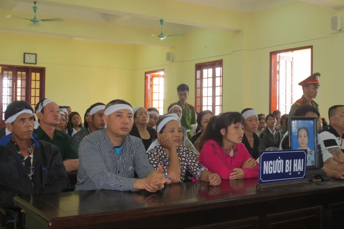Có rất đông người thân của bị hại mang khăn tang và di ảnh chị Dụ đến tham dự phiên tòa. Tại phiên tòa, lúc đầu bị cáo Khính cho rằng không nhớ rõ những gì đã diễn ra rồi vòng vo chối tội. Người thân của Khính cho biết trước khi xảy ra án mạng, tính tình Khính có thay đổi, có lúc chạy la hét trong làng, nhiều lần đánh đập vợ, con.
