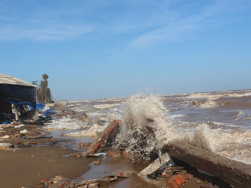Sóng biển gây sạt lở trầm trọng bờ biển Cồn Bửng. Ảnh: ĐÔNG HÀ
