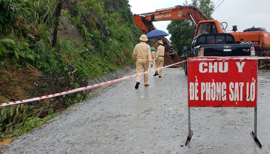 Lực lượng chức năng đã phong tỏa tuyến đường 40B.