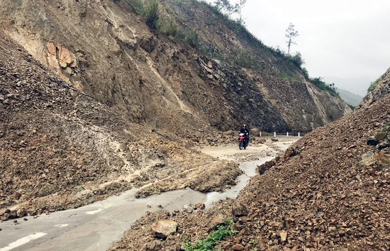Sạt lở gây tắc đường ở xã An Lĩnh, huyện Tuy An. Ảnh: BÙI VĂN THÀNH