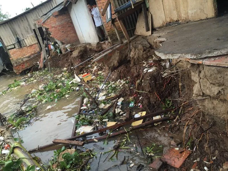 “Tôi cùng con trai, con gái đang ăn cơm thì nghe tiếng ầm ầm rồi ba mẹ con cùng căn nhà cùng sụp xuống sông. Tôi và con gái không biết bơi nên chới với, may mà con trai bơi giỏi nên kịp thời đưa hai mẹ con lên bờ an toàn. Gia đình mất hết, không còn tài sản gì nữa” - bà Trần Kim Chi bàng hoàng kể lại. Hiện nhiều hộ dân phải che bạt sống tạm gần khu vực sạt lở, chờ chính quyền địa phương có hướng khắc phục và hỗ trợ đến nơi ở mới.