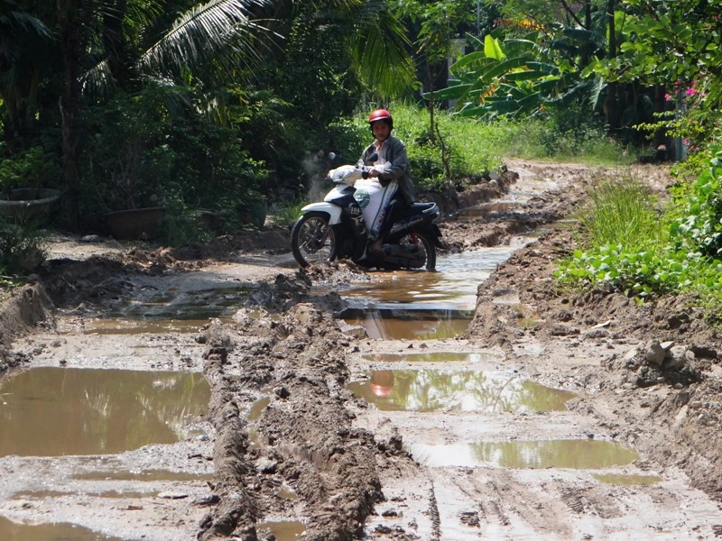 Bờ đê sông Sài Gòn đoan qua địa bàn quận 12 thường xuyên bị hư hỏng, lầy lội. Ảnh: TRUNG THANH