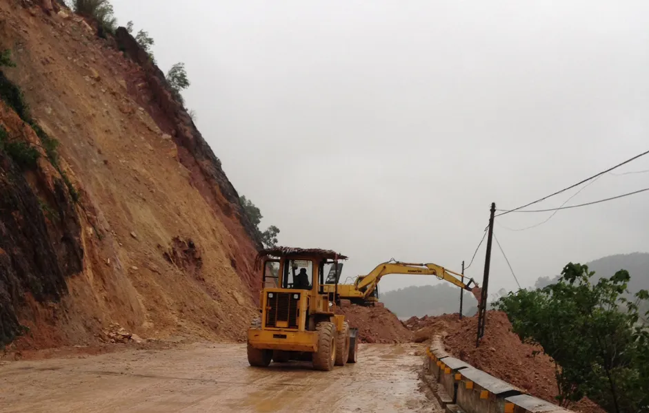 Ghi nhận tại hiện trường cho thấy, ngành GTVT tỉnh Nghệ An và huyện Thanh Chương đã nỗ lực huy động nhiều thiết bị máy móc, lực lượng đến làm việc nhưng chưa thể thông đường do lượng đất đá sạt lở quá lớn. Trong khi đó, từ trên đỉnh núi một lượng lớn đất, đá đang “uy hiếp” sạt lở tiếp.