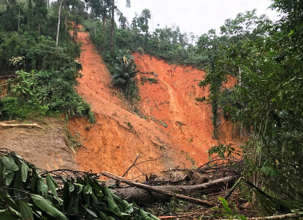 Đây là một trong những lớp bùn đất thượng nguồn con suối, bên trong những rừng keo lá tràm tuồn xuống. Cạnh đó, đối diện con suối này vẫn còn nhiều lớp đất đá bị sạt lở khác tuồn xuống suối. Đó là lý do tại sao, một lượng đất đá lớn đến nỗi vùi lắp một ngôi làng.