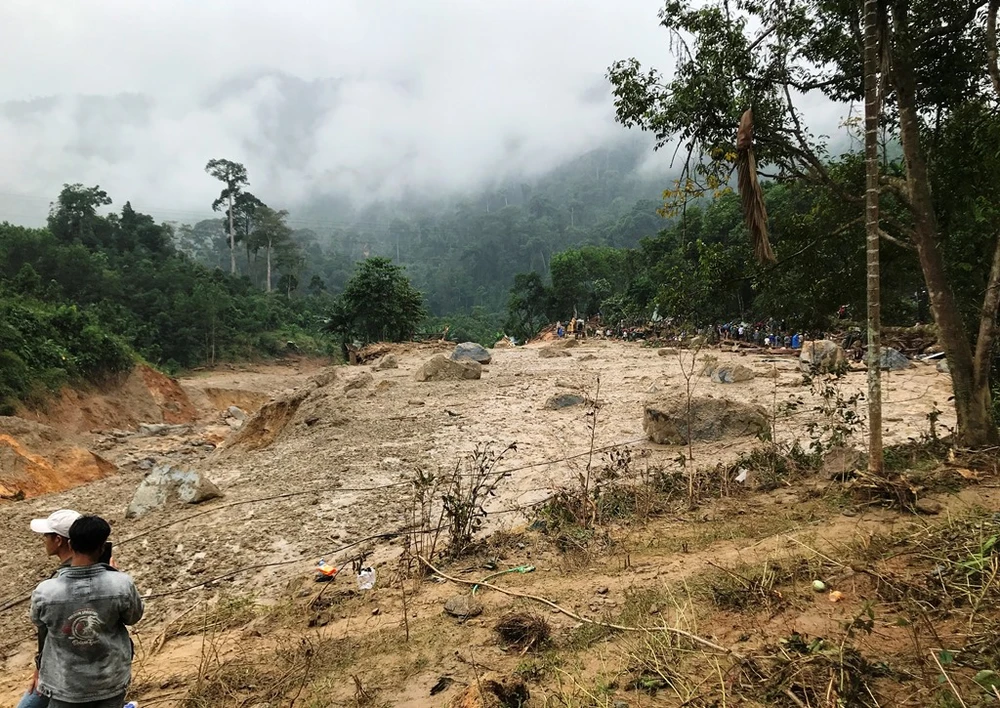Ngày 28-10, mọi người trong làng đang đóng cửa vì cơn bão số 9 càn quét. Bất ngờ, đất đá từ trên núi cao hàng trăm mét tuôn xuống. Mọi người không kịp trở tay, tất cả nhà đều bị cuốn đi, rồi vùi lắp và biến mất theo lớp bùn đất.