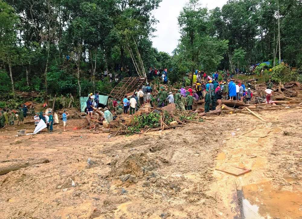 Trưa 30-10, thiếu tướng Nguyễn Đình Tiến, Phó Tư lệnh quân khu V, cho biết quân đội đã đưa chó nghiệp vụ vào phát huy hiệu quả trong việc tìm kiếm người mất tích trong vụ sạt lở ở thôn 1 (xã Trà Leng, huyện Nam Trà My, Quảng Nam). Do sạt lở đất quá mạnh nên có đến 20 người chết và mất tích. Hiện vẫn còn 12 người chưa tìm thấy.
